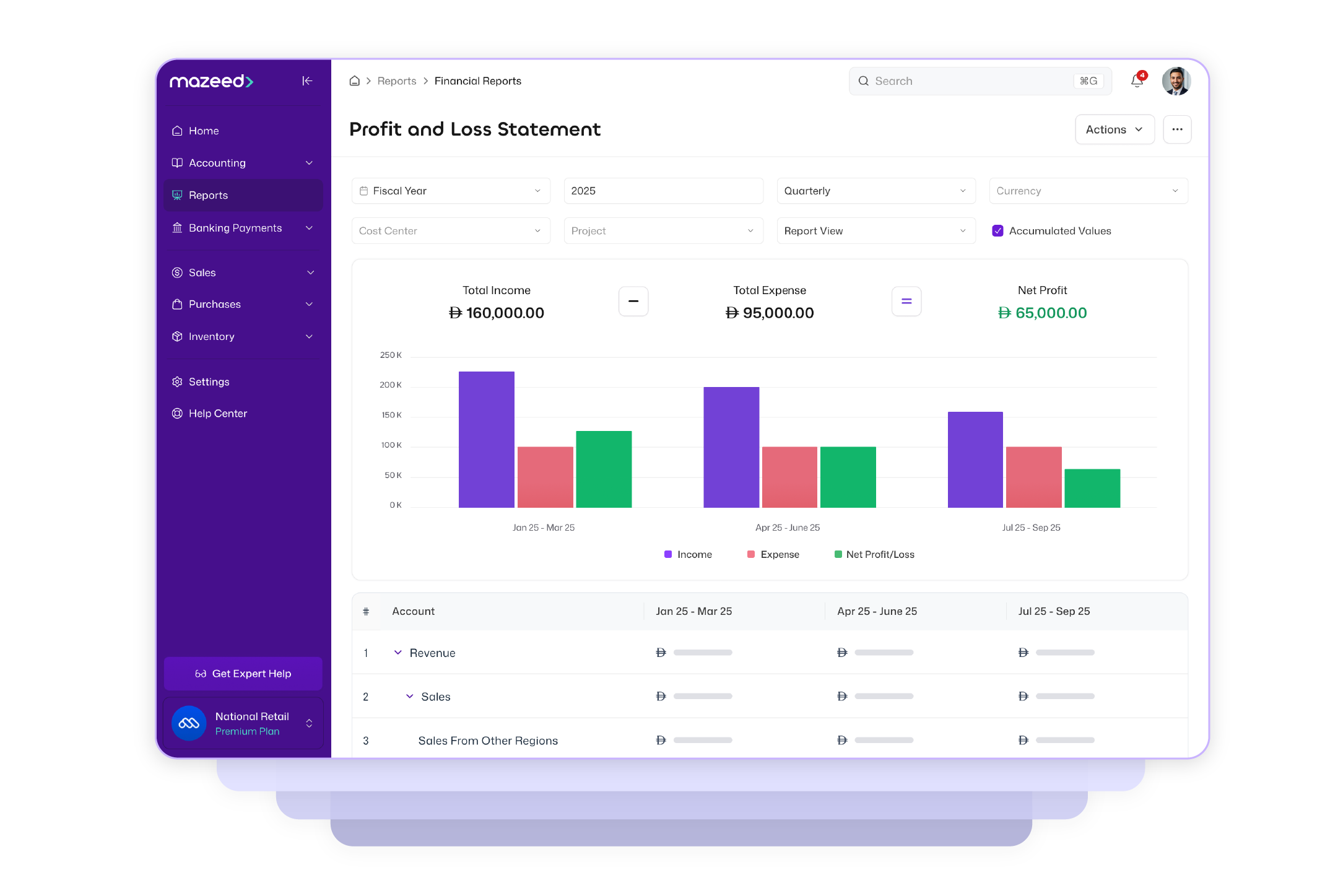 ابق على اطلاع بأرقامك مع تقارير مالية محدثة تساعدك في اتخاذ قرارات أكثر ذكاء.